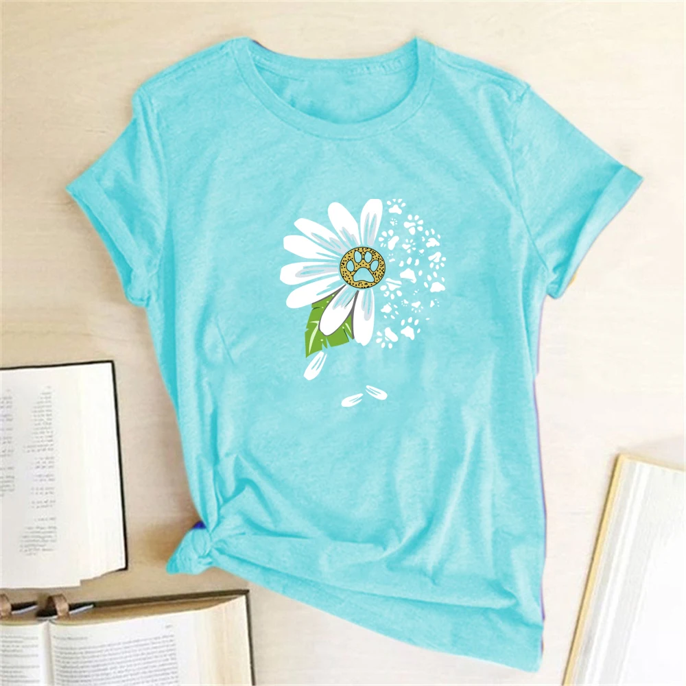 Name: Daisy Bear Paw Print T-shirts Women Summer Graphic Tee Aesthetic Shirts for Women Casual