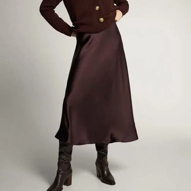 Best Skirt from FAST&FASHION for Satin Skirts Silk Silver Women Waist Long Hight Mid-Calf Wine Smooth Glossy Soft Office Lady